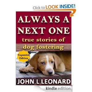 From the moment I saw the title of this book I was very excited to have the opportunity to review it. My son and daughter in law are very involved in our local animal shelter and have fostered several dogs. John L. Leonard begins his book “Always A Next One: true stories of dog fostering” by sharing how he got involved in fostering dogs. He is eager to admit it was his wife who first got involved. She began with Thursday afternoons and soon added Saturdays. The next step was to provide a “safe house” for an animal. Repeatedly the couple reminded each other that they could not keep the animal, just as my son and daughter in law found that it was mere meaningless words.