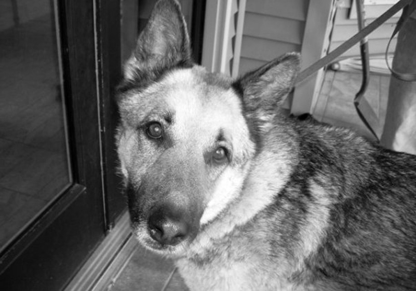 shiloh2_bwOur dog Shiloh might not be the sharpest tool in the shed, but we love him dearly. He’s the goofball of our pack, a giant galoot of a German Shepherd with a staggering number of genetic defects due to unscrupulous overbreeding. He looks ferocious and his bark is intimidating, but the image he projects is in stark contrast with his sweet and gentle personality.
